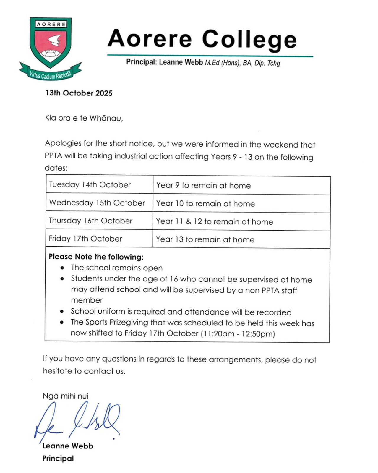 Aorere College PPTA Strike Action Dates